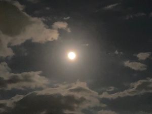 今日の月の出の時刻には東の空は生憎の曇り空でしたが、18時半ごろには雲間から円い月が姿を現しお月見ができました。 (^^)