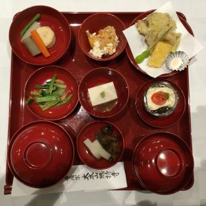用意されていたのは、会券にある「おしのぎ」のイメージの食事ではなく、「五観の偈」の箸袋が添えられた禅寺の御器のお膳でした。(箸と箸袋は持ち帰りでした!)