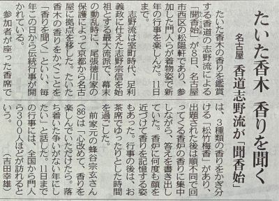 昨日8日から、志野流香道の「聞香始(もんこうはじめ)」が家元・松隠軒で始まっています。