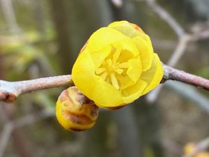 庭ではロウバイ【蝋梅】が咲き出しています。