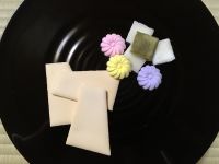 初雪があり、草木には雪がつもりました。岐阜・奈良屋の干菓子はメレンゲです。