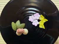 [主菓子]あも歌留多(叶匠寿庵)/[干菓子]花・胡蝶有平糖・クッキー/[花]菜花